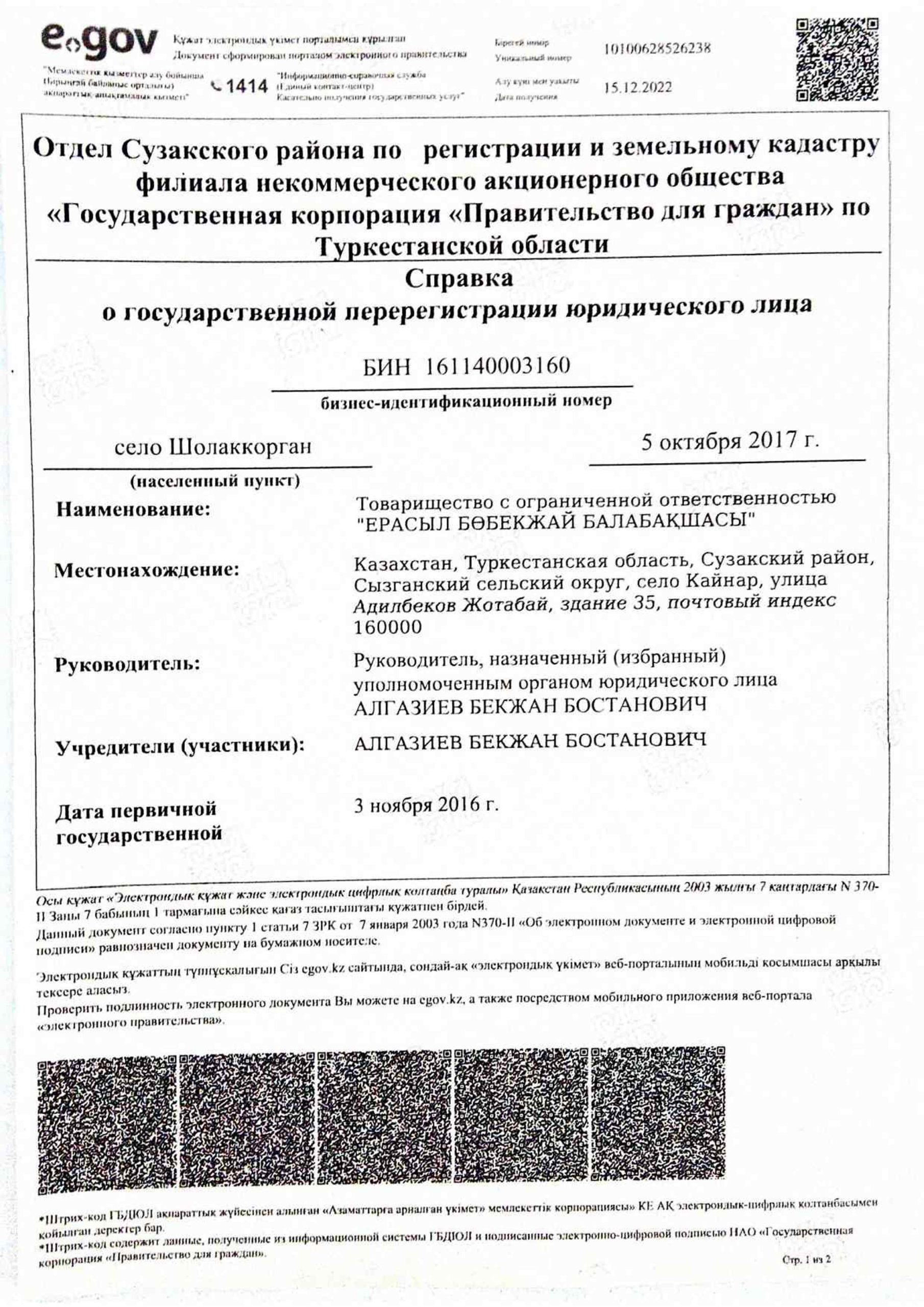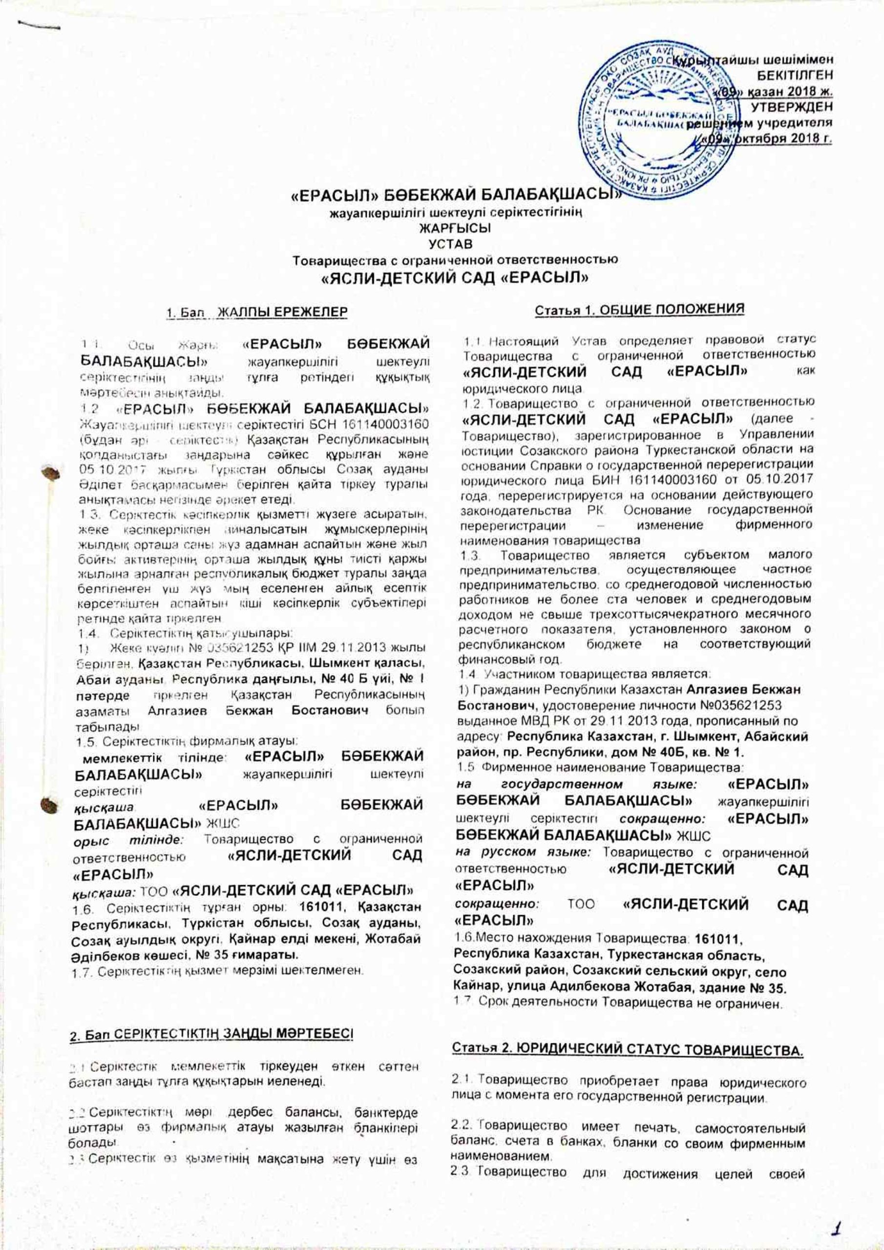 "ЕРАСЫЛ" бөбекжай балабақшасы