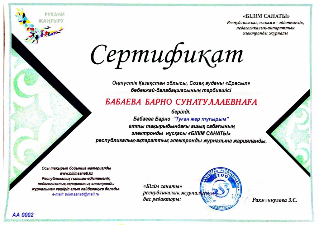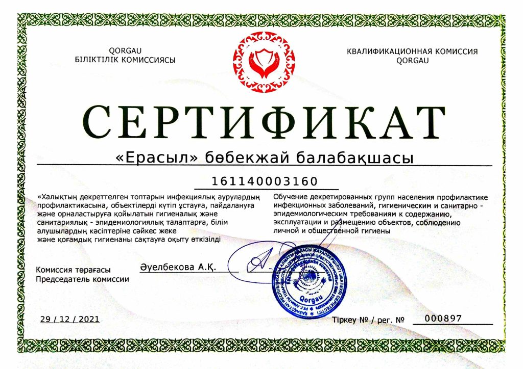 "ЕРАСЫЛ" бөбекжай балабақшасы