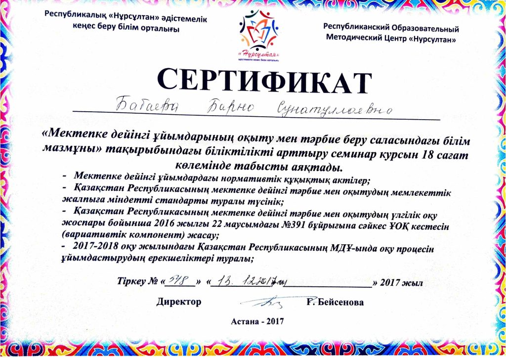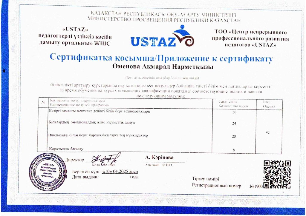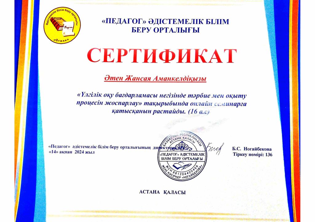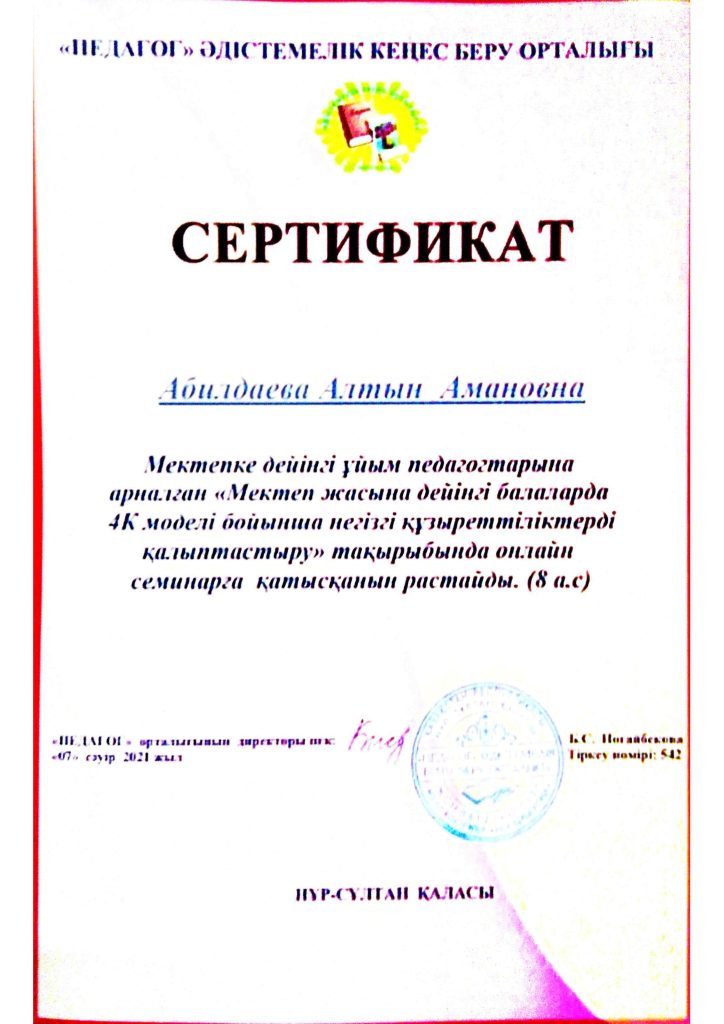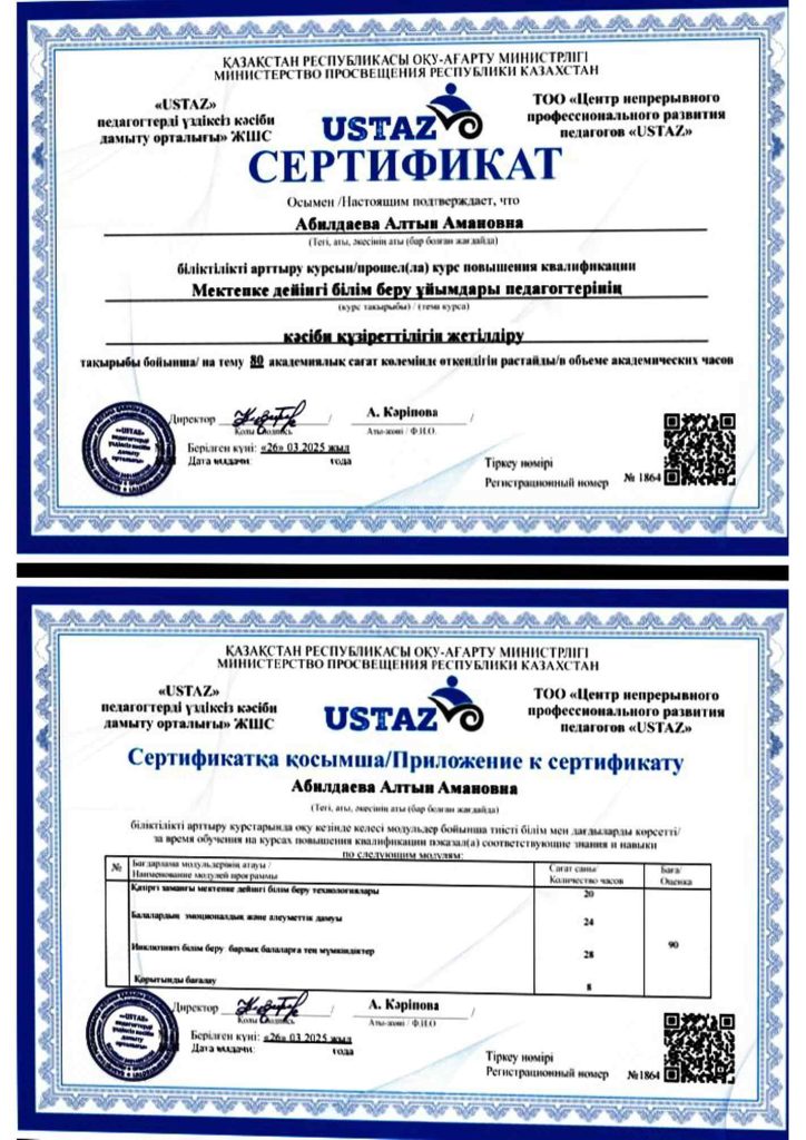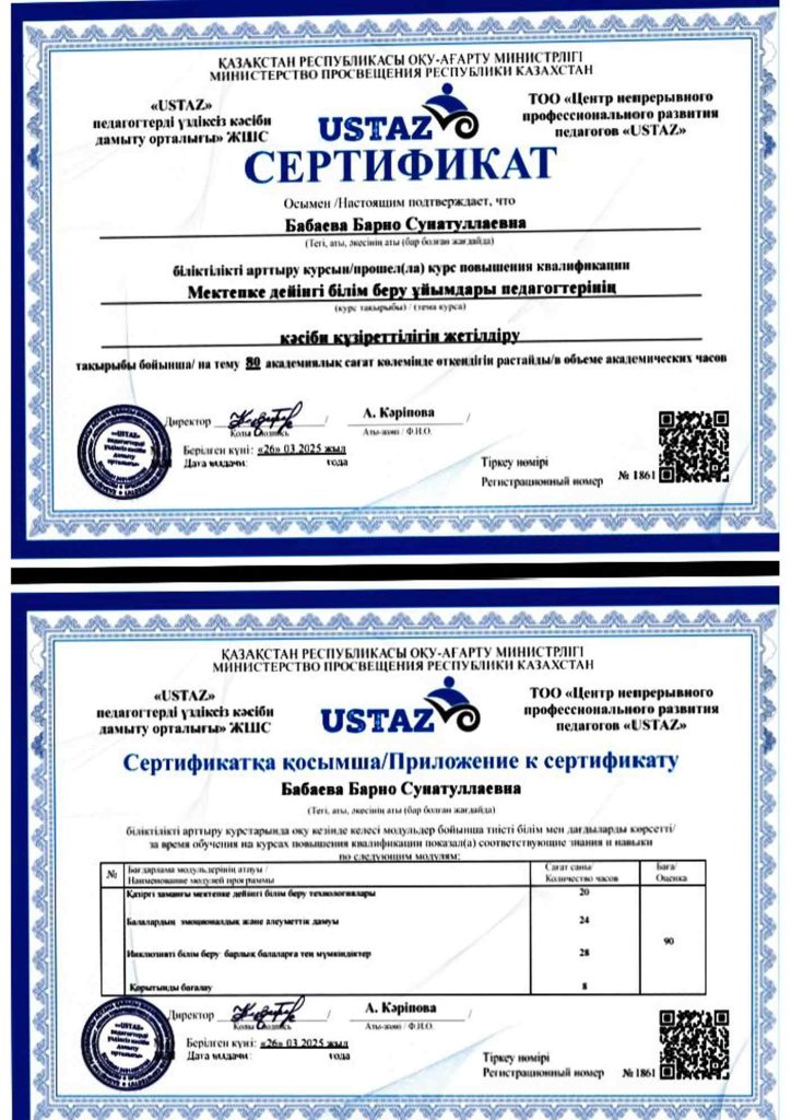 ПЕДАГОГТАРДЫҢ БІЛІКТІЛІК АРТТЫРУЫ