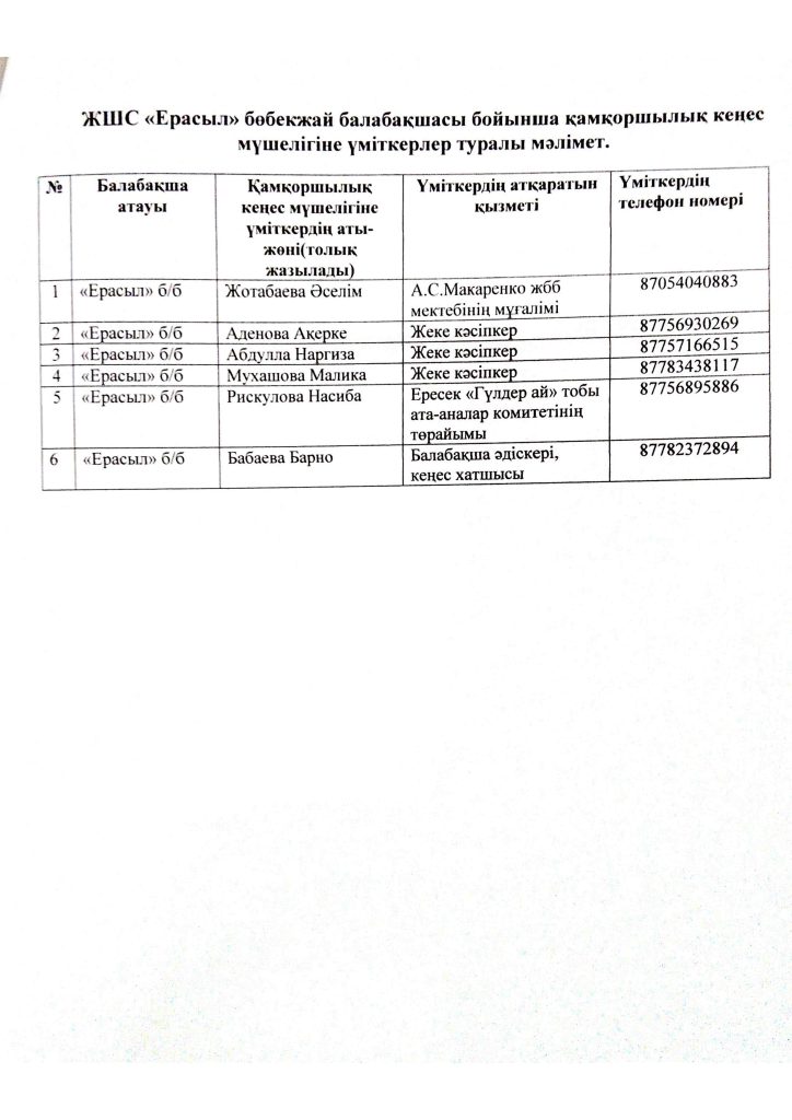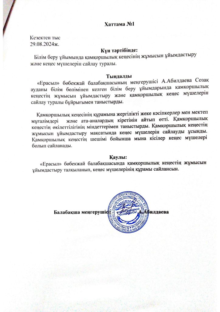 "ЕРАСЫЛ" бөбекжай балабақшасы